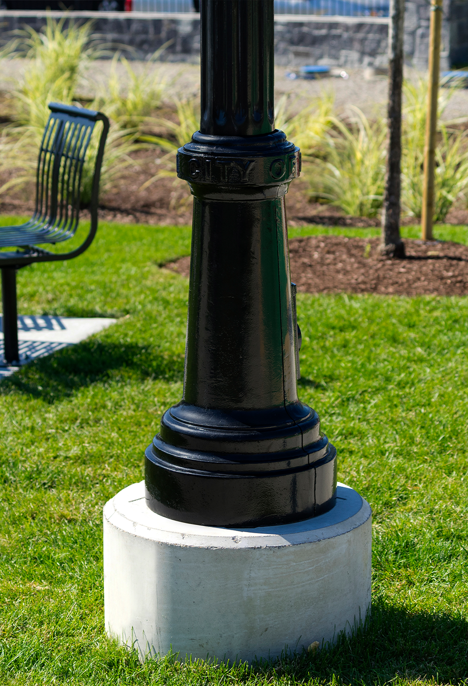 Spring City offers a wide variety of custom accessories for streetscape lighting, including text detailing on the base of light fixtures. Scroll Text is a great way to show the personality of your location, and it's also a great way to attract attention to your brand. Contact Spring City today to learn more about our custom street lighting solutions.